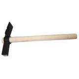 Zednické kladivo s kónickou dřevěnou násadou a černěnou hlavou. Vytahovák hřebíku, hlava pro zatloukání.