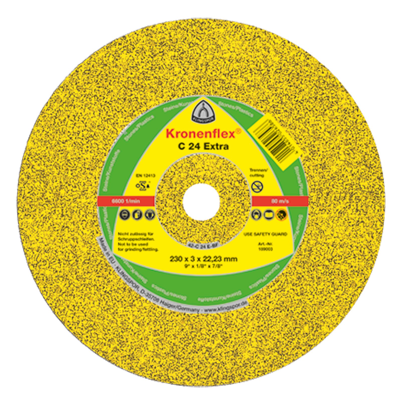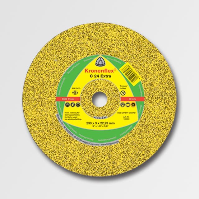 - zrno: karbid křemíku - pojivo: syntetické pryskyřice na bázi aldehydu - provedení: rovný - maximální pracovní rychlost 80m/s - maximální otáčky 13300/min - pro výšení pevnosti armováno dvouvrstvou sklotextilní vložkou