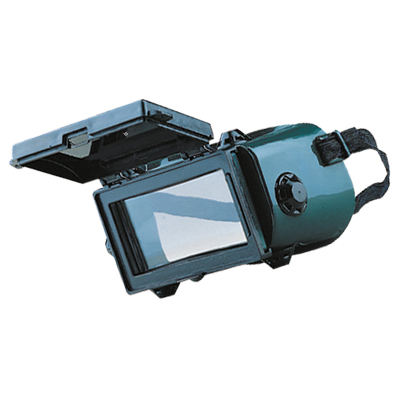 Brýle pro svářeče s měkkou plastovou lícnicí, pevným, čirým, obdélníkovým zorníkem a odklápěcím svářečským zorníkem, nepřímé větrání. Jsou bez ochranného skla.